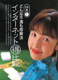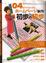 ■2000.2 インターネットアスキー 特集ページのモデルとコラム。大きな鉛筆はCG合成。スプーンおばさんになったようなカンジです。 |